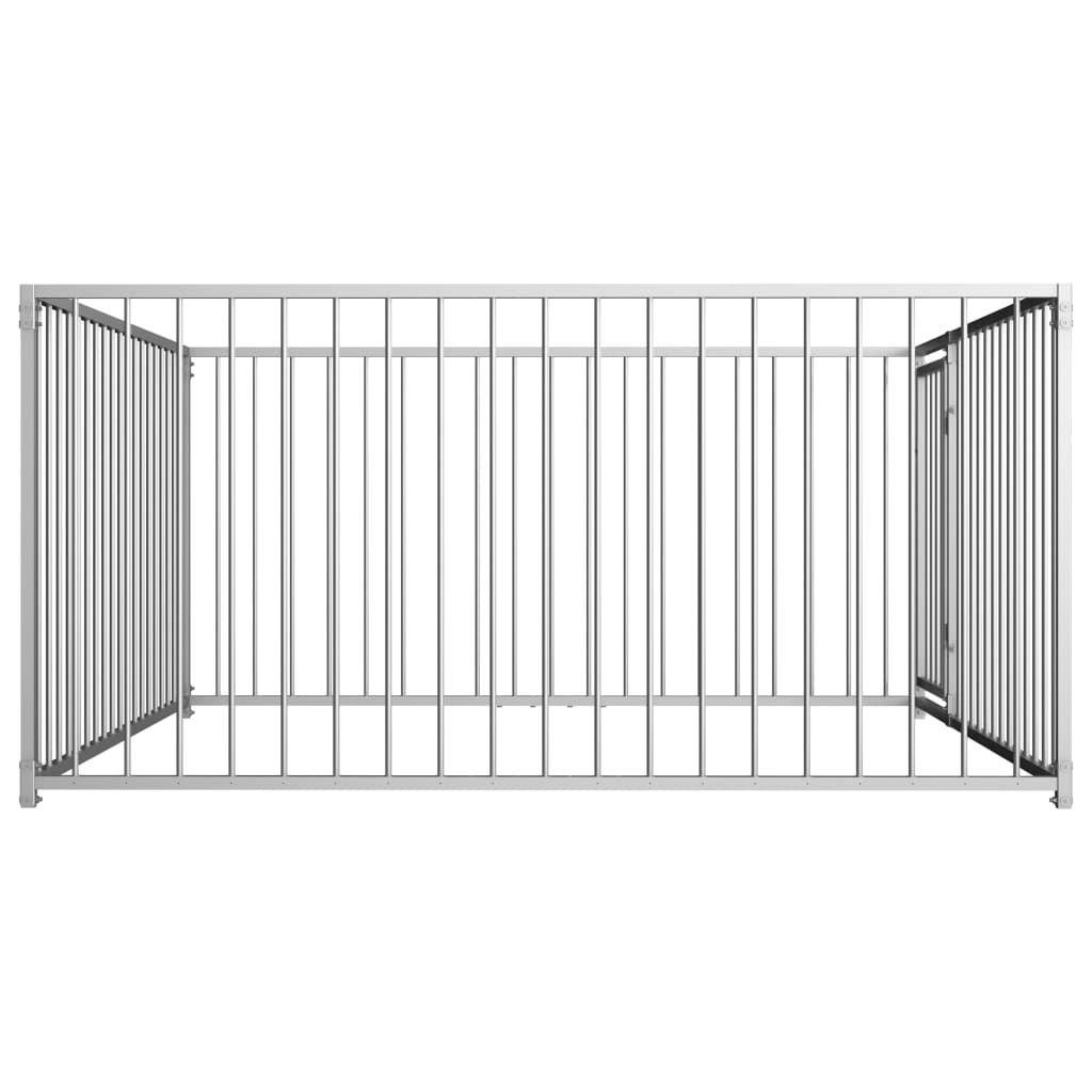 This versatile, heavy-duty dog house features multiple uses: playing, exercising, training, or simply keeping your dog safe. It will be the perfect play paradise for your furry friends! This kennel provides ample exercise space while the steel bar walls help prevent mischief and unexpected accidents while enabling ventilation. Thanks to the sturdy steel construction, this quality dog kennel is durable and built to last. Additionally, the hinged door has a lockable latch system which ensures extra security and safety for your dogs. This kennel is easy to assemble.Please note that the door can be installed on the left or right side, which depends on your own needs.